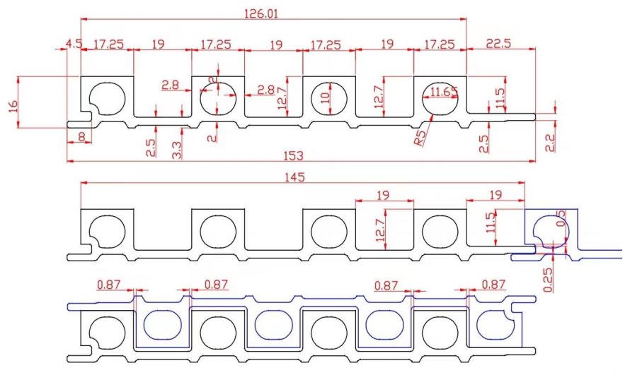 • Spec(W*H*L):153mm*16mm*3000mm